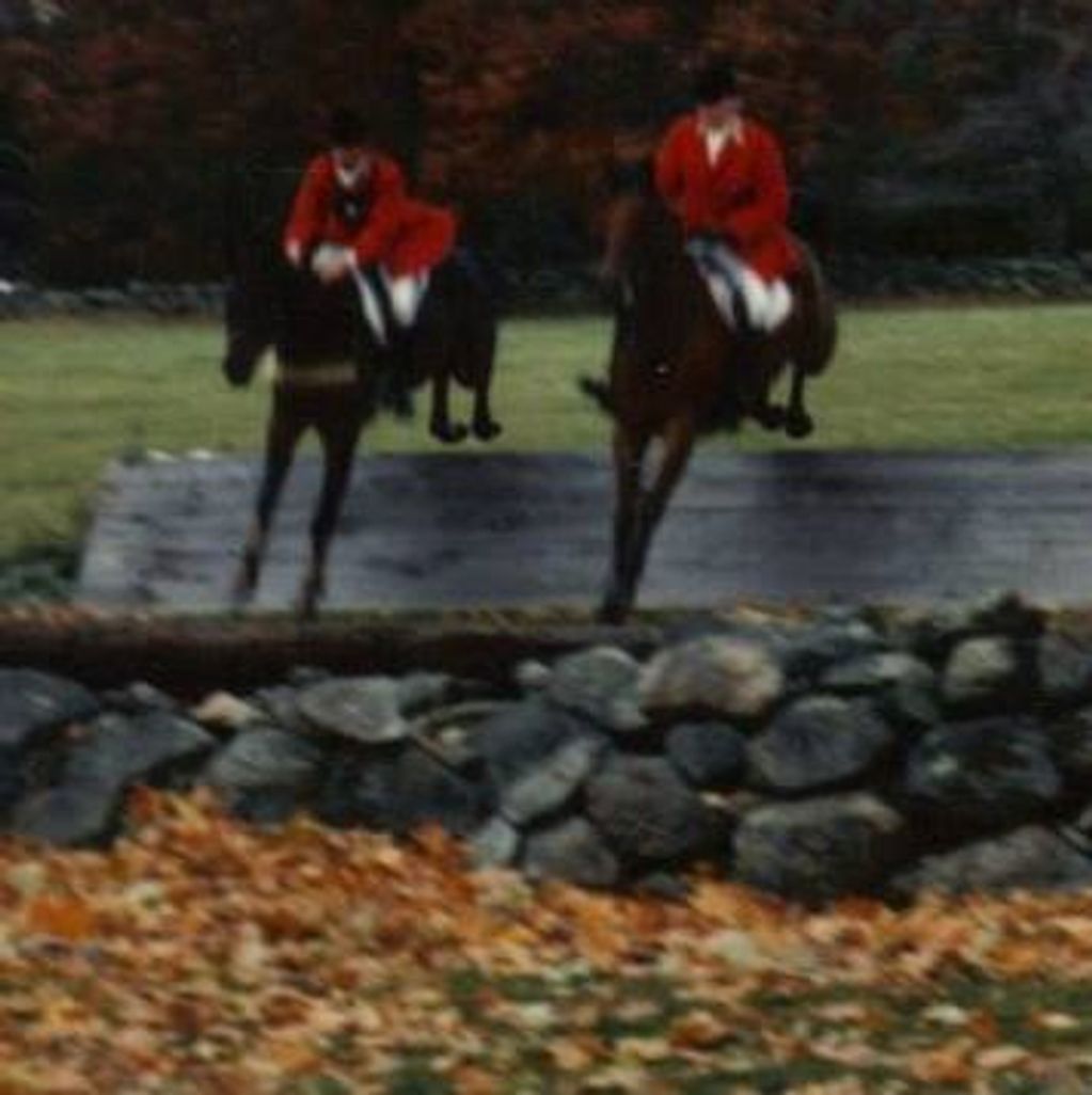 Ed Dillon and The Bootlegger with Jack Dillon and Irish. New England Hunter Trials 1980s.